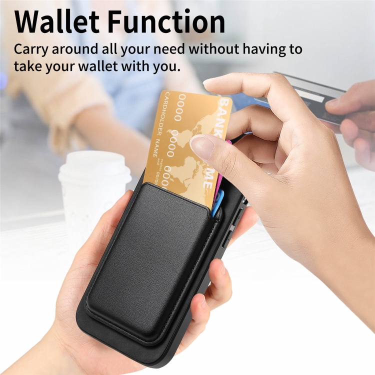 Funda para teléfono iPhone Xr Retro Magsafe Card Bag PU con Contraportada (Negro)