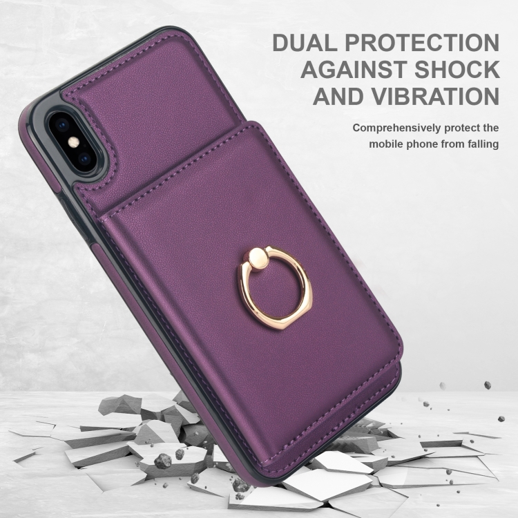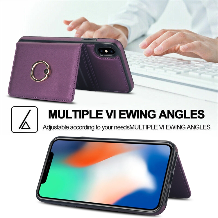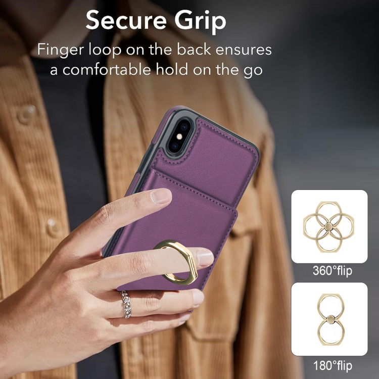 Funda para Teléfono iPhone Xr con Soporte para Anillo y Tarjeta Antirrobo (Púrpura Oscuro)