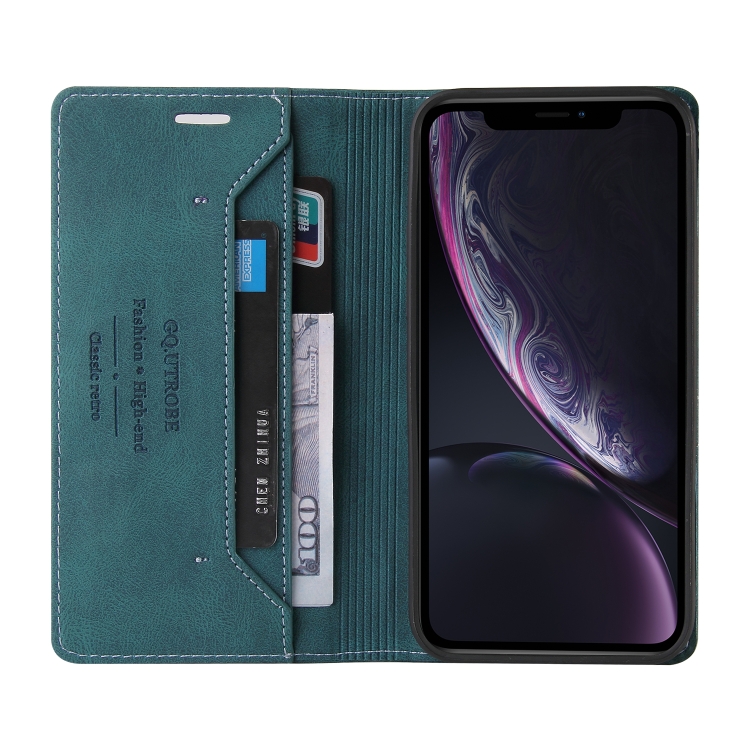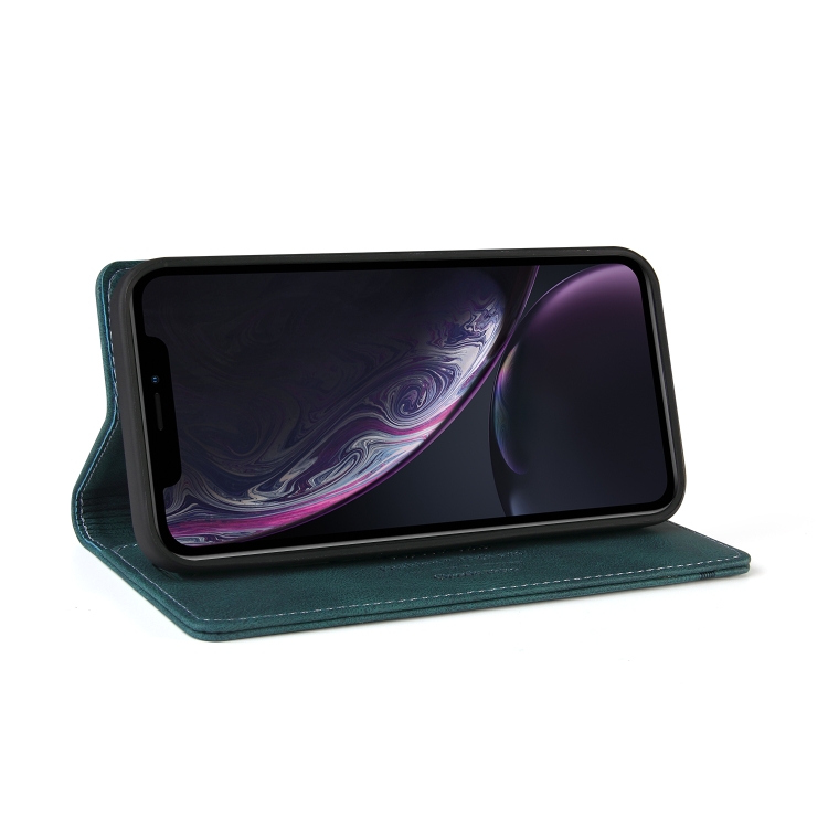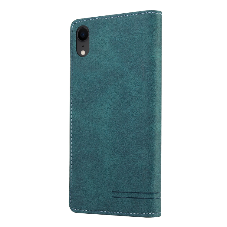 Funda de Cuero iPhone Xr Skin Feel con Tapa Horizontal Cepillo Antirrobo Soporte Ranuras para Tarjetas y Billetera (Azul)