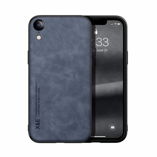 Funda de teléfono para iPhone Xr Skin Feel con respaldo de cuero magnético (Azul)
