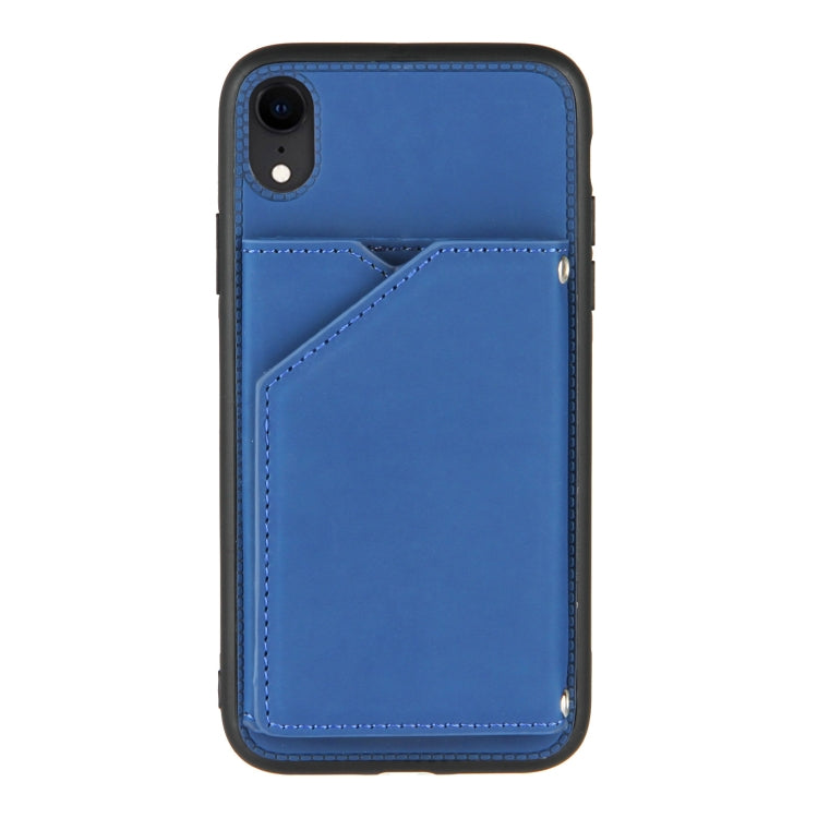Funda para iPhone Xr Skin Feel PU + TPU + PC Contraportada Estuche a Prueba de Golpes con Ranuras para Tarjetas Soporte y Marco de Fotos (Azul Real)