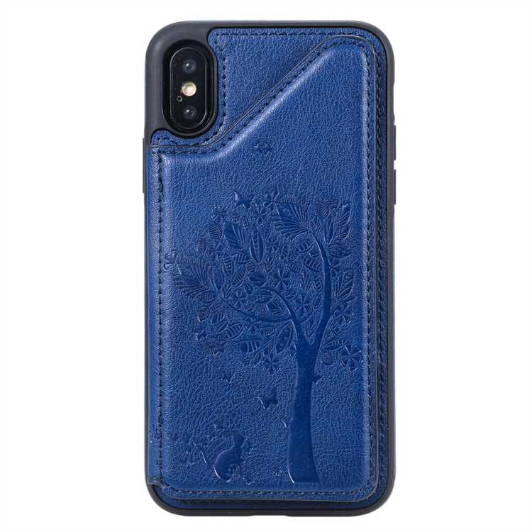 Estuche protector para iPhone Xs Cat Tree con patrón en relieve y ranuras para tarjetas (Azul)