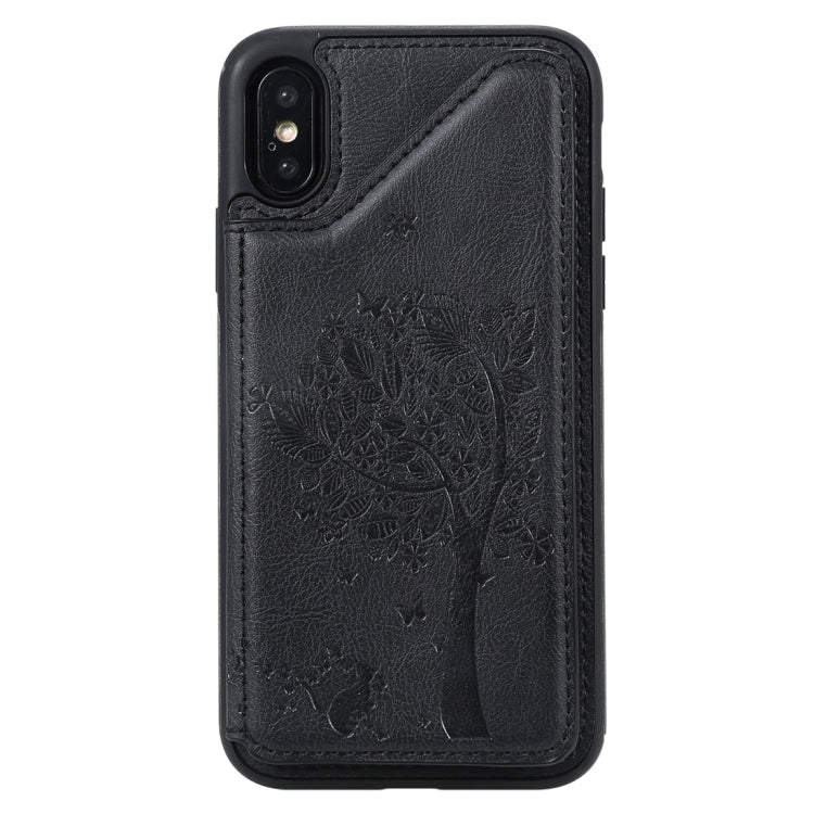 Estuche protector para iPhone Xs Cat Tree con patrón en relieve, ranuras para tarjetas y marco de fotos (Negro)