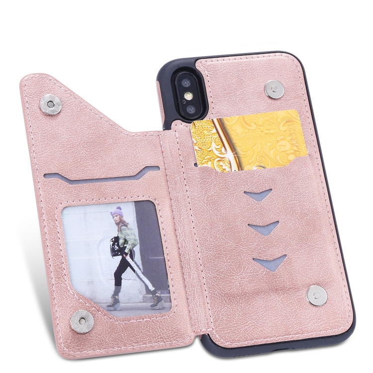 Estuche protector para iPhone Xs Cat Tree con patrón en relieve, a prueba de golpes, ranuras para tarjetas y marco de fotos (Oro Rosa)