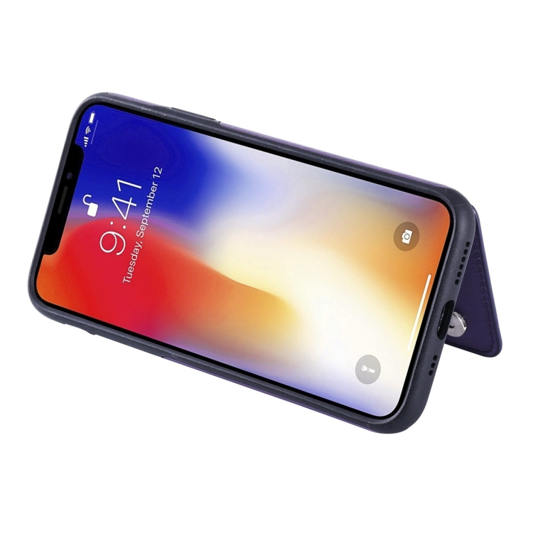Estuche Protector para iPhone Xs Cat Tree Embossing Pattern a Prueba de Golpes con Ranuras para Tarjetas y Marco de Fotos (Púrpura)