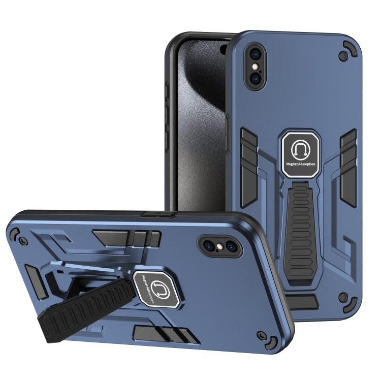 Funda para teléfono iPhone Xs Max 2 en 1 con soporte a prueba de golpes (Azul)
