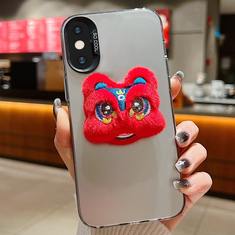 Funda para Teléfono iPhone Xs Max Lion Dance Plush Doll Año Nuevo (Gris Back Red Lion)