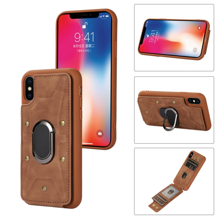 Funda para iPhone Xs Max Armor Ring Wallet Back Cover Phone Case (Marrón)