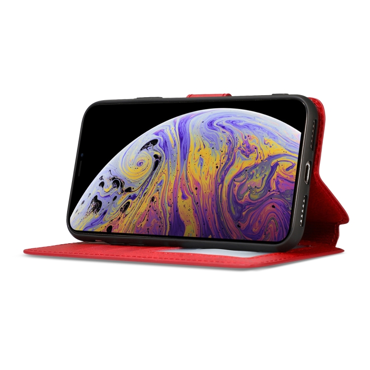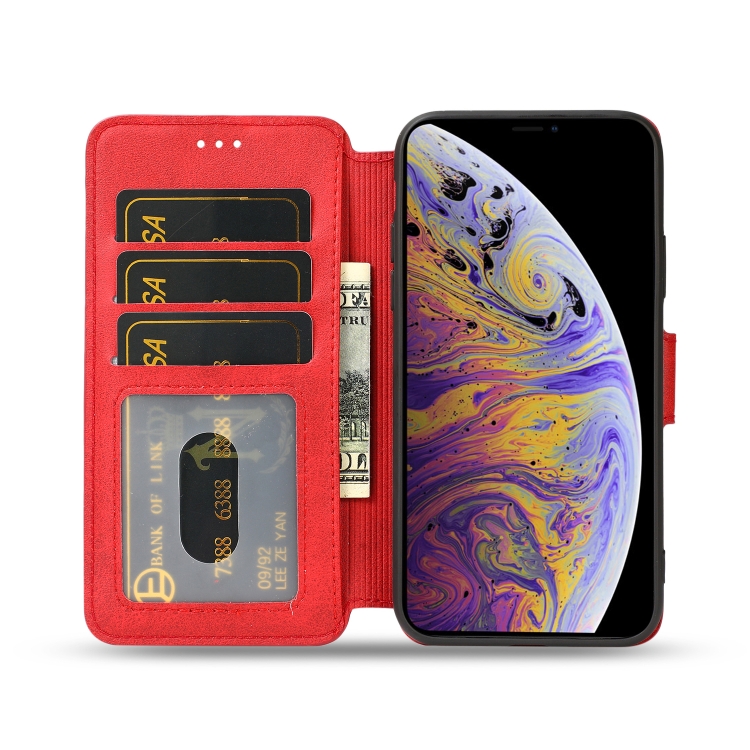 Funda para iPhone Xs Max Calf Texture Hebilla Magnética Cuero Tapa Horizontal Soporte Ranuras Tarjetas Billetera Marco de Fotos (Rojo)