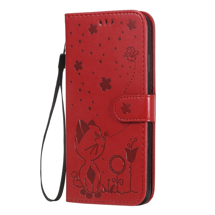 Funda para iPhone Xs Max Cat Bee Patrón en Relieve Cuero Tapa Horizontal a Prueba de Golpes con Soporte y Ranuras para Tarjetas y Billetera (Rojo)