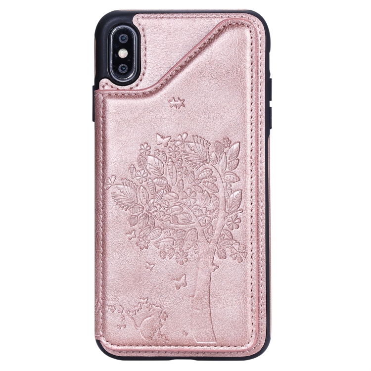 Estuche protector para iPhone Xs Max Cat Tree relieve patrón a prueba de golpes con ranuras para tarjetas marco de fotos (Oro Rosa)