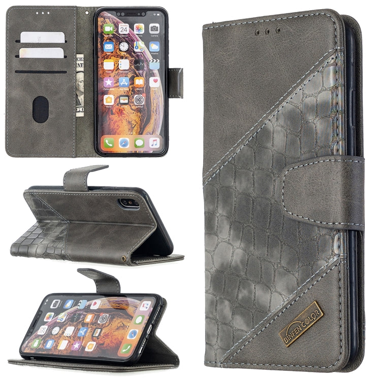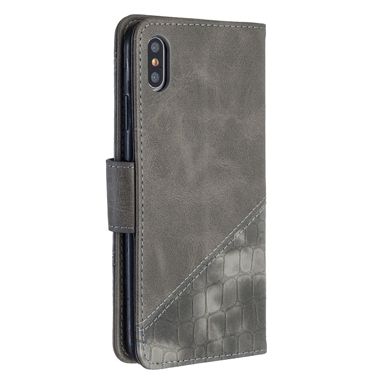 Funda para iPhone Xs Max Cuero de PU Textura Cocodrilo Tapa Horizontal Billetera Soporte Ranuras para Tarjetas (Gris)