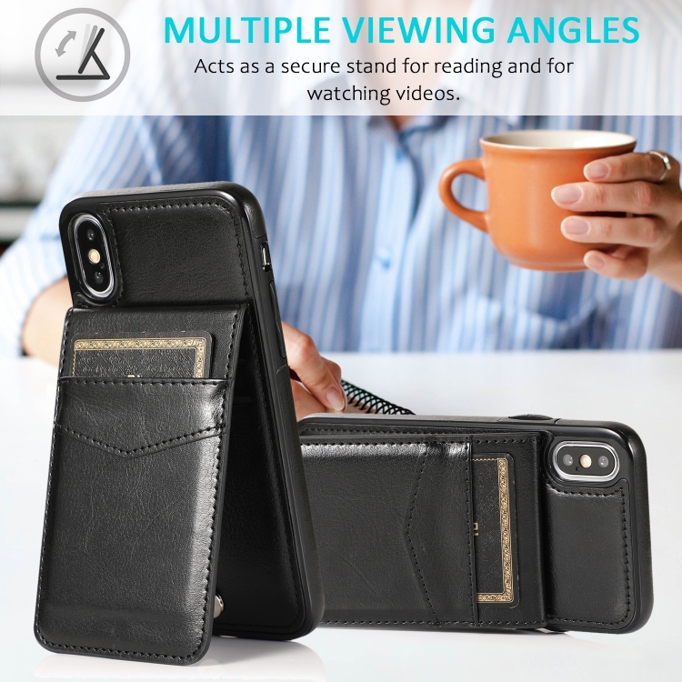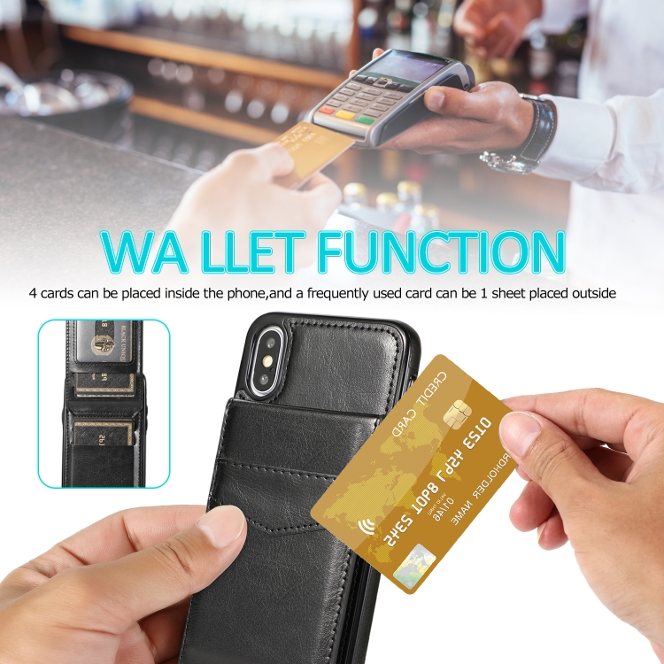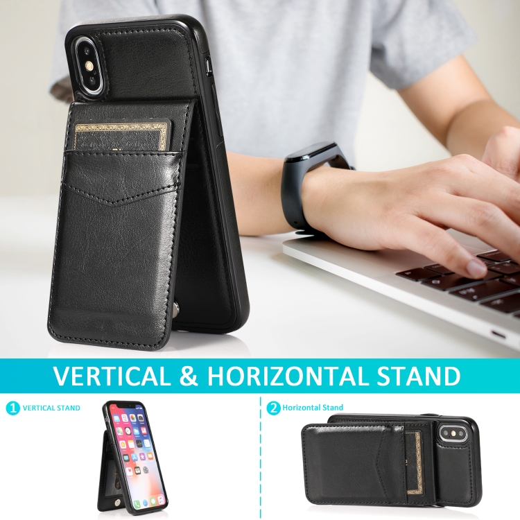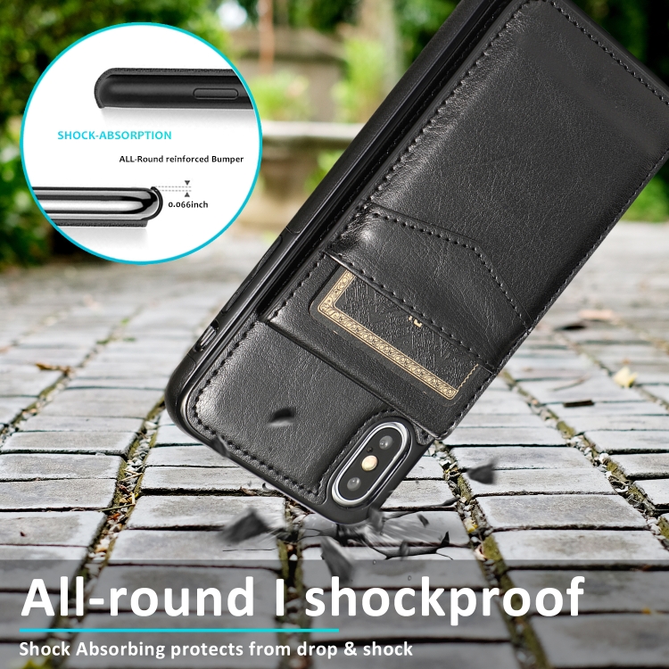 Funda Protectora para iPhone Xs Max PC + TPU con Soporte y Ranuras para Tarjetas (Negro)