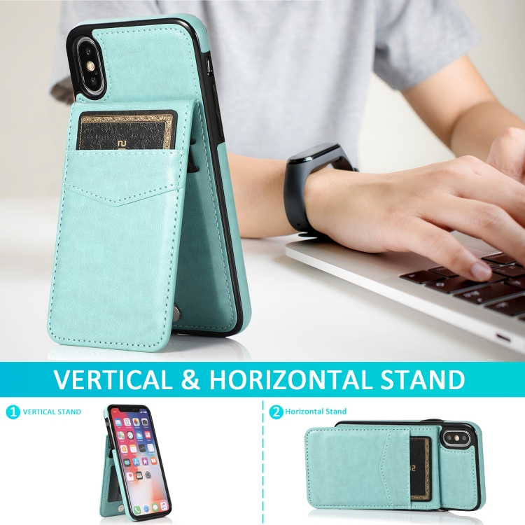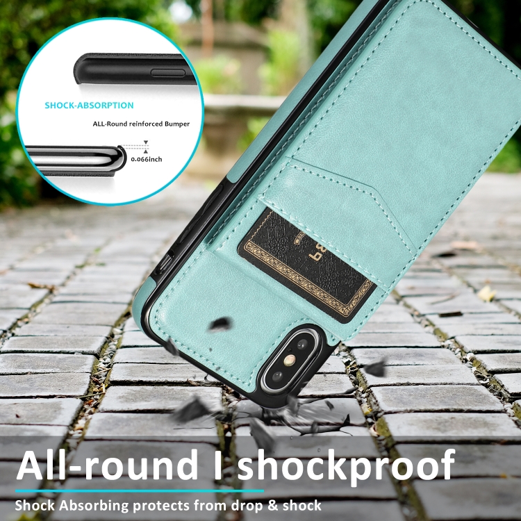 Funda Protectora para iPhone Xs Max PC + TPU con Soporte y Ranuras para Tarjetas (Verde)