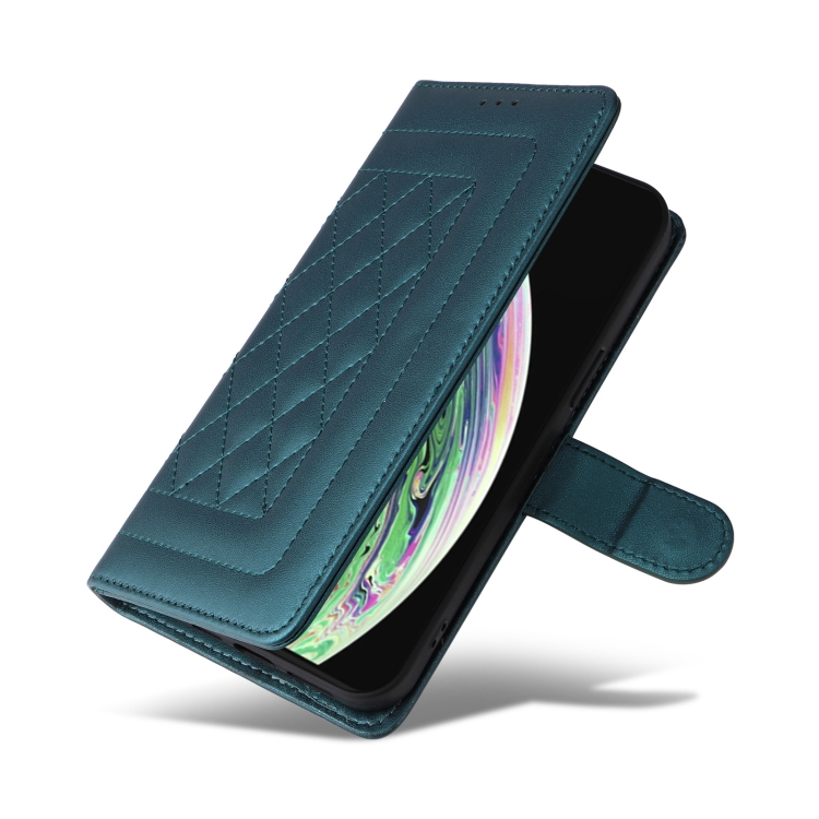 Funda para iPhone Xs Max Diamond Lattice de Cuero con Tapa (Verde)