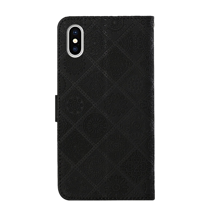 Funda de Cuero para iPhone Xs Max Estilo Étnico Patrón en Relieve con Tapa Horizontal Soporte Ranuras Tarjetas Billetera Cordón (Negro)