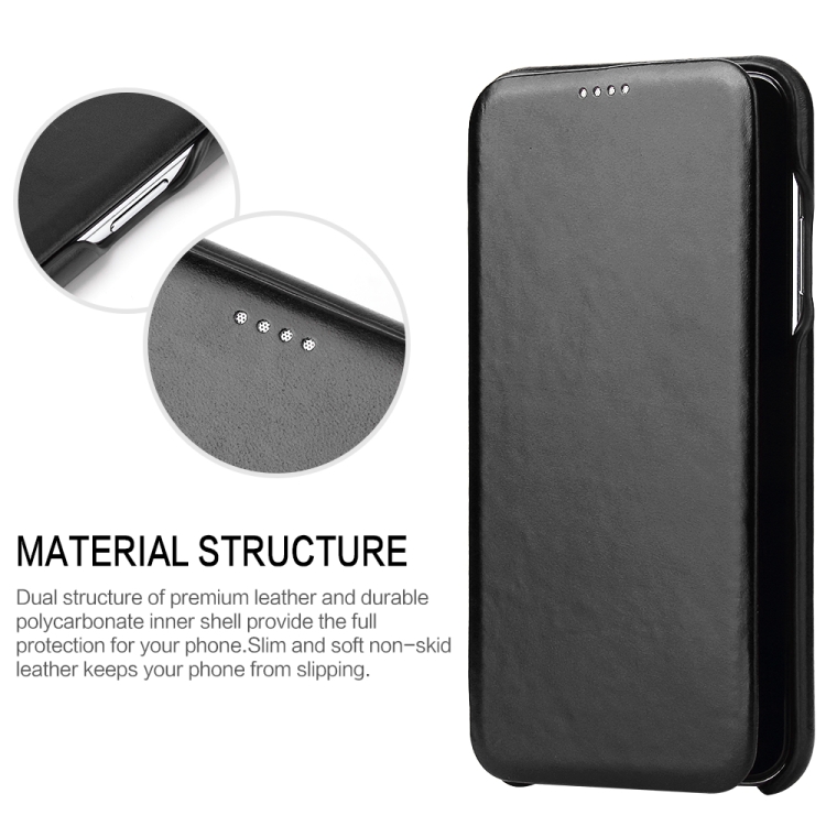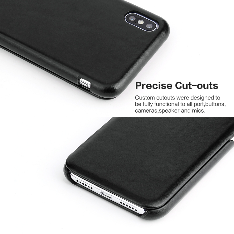 Funda para iPhone Xs Max Fierre Shann Business Cuero Genuino con Tapa Horizontal Magnética (Negro)