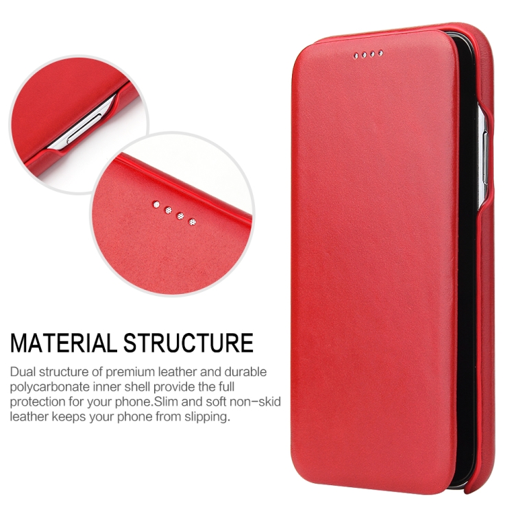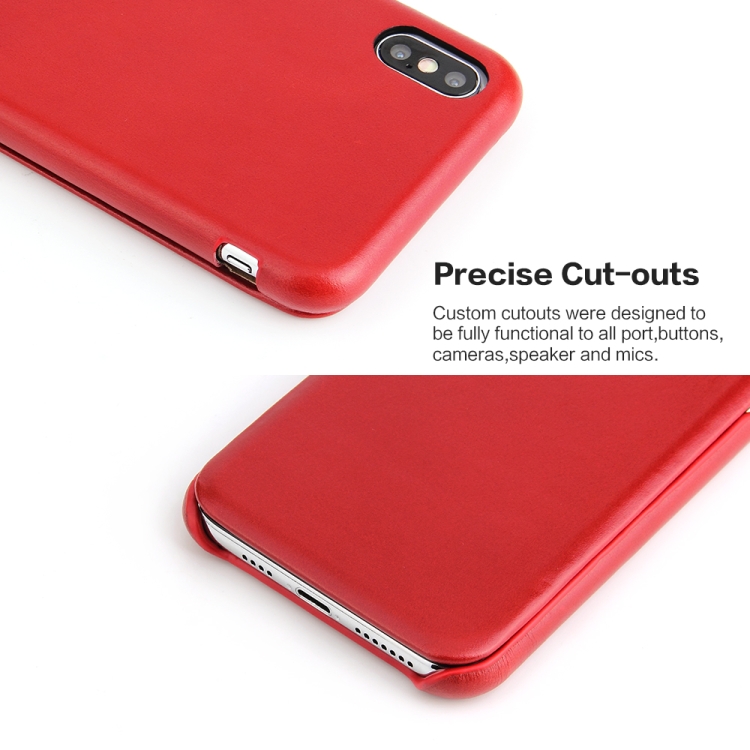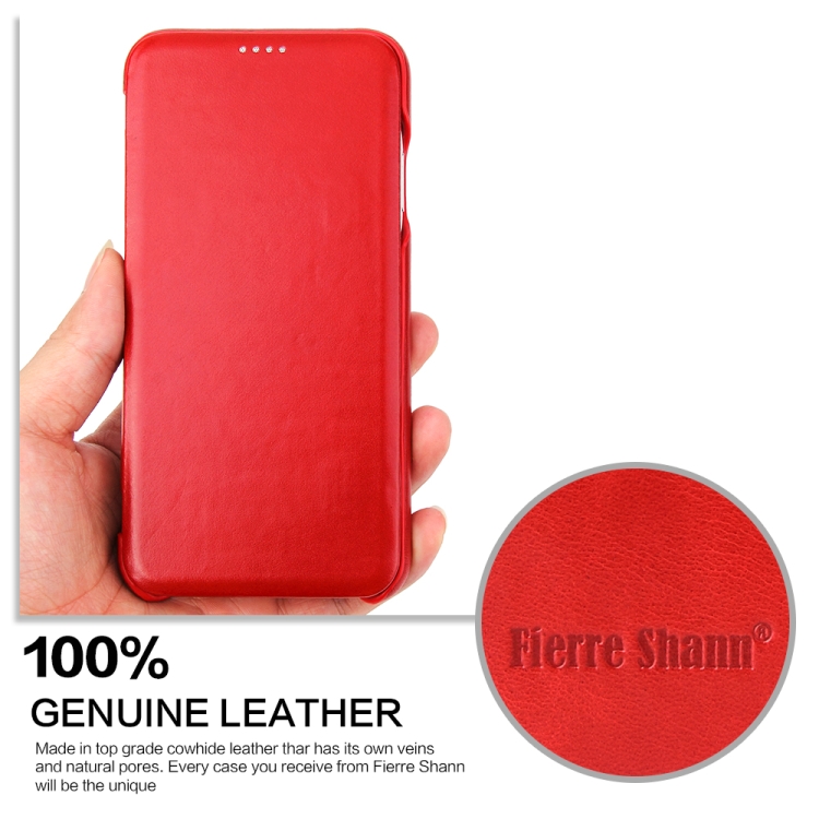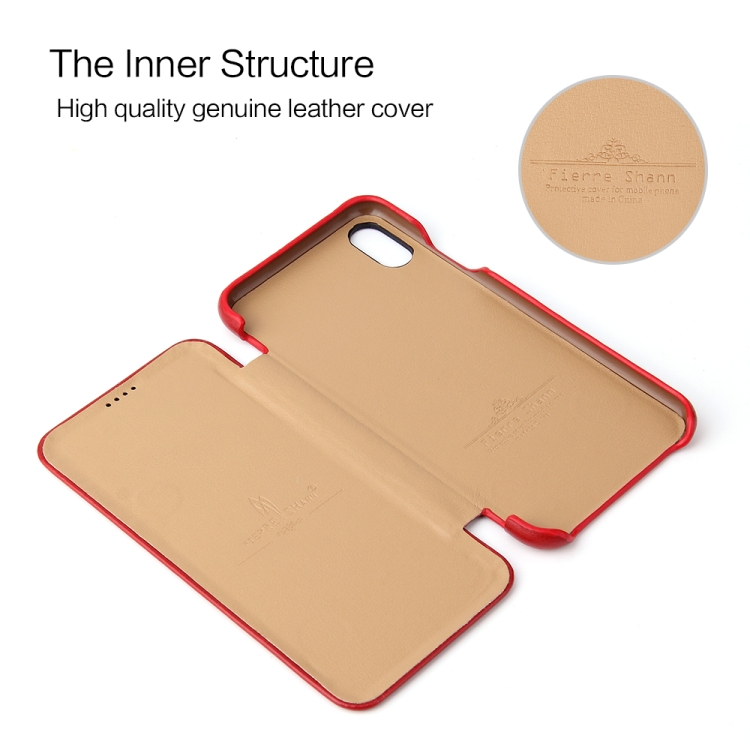 Funda para iPhone Xs Max Fierre Shann Cuero Genuino Tapa Horizontal Magnética (Rojo)