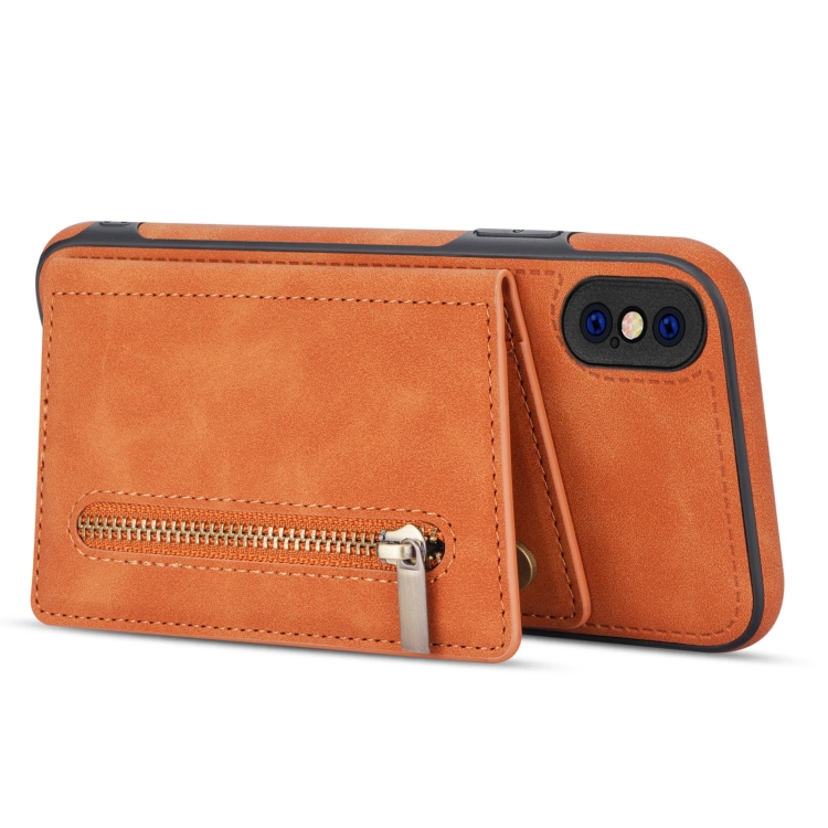 Funda para iPhone Xs Max con Cremallera y Tarjetero (Marrón)