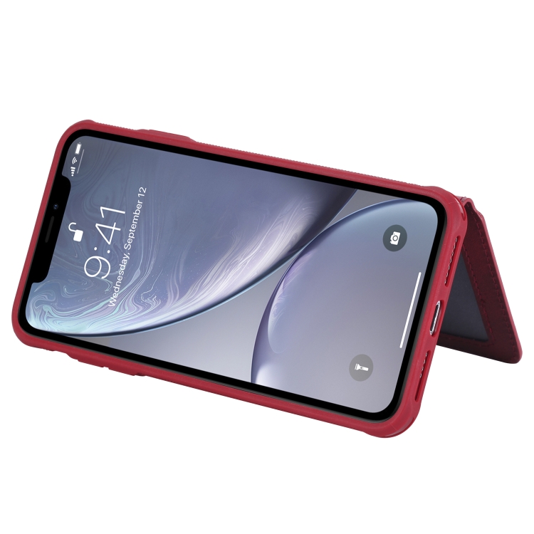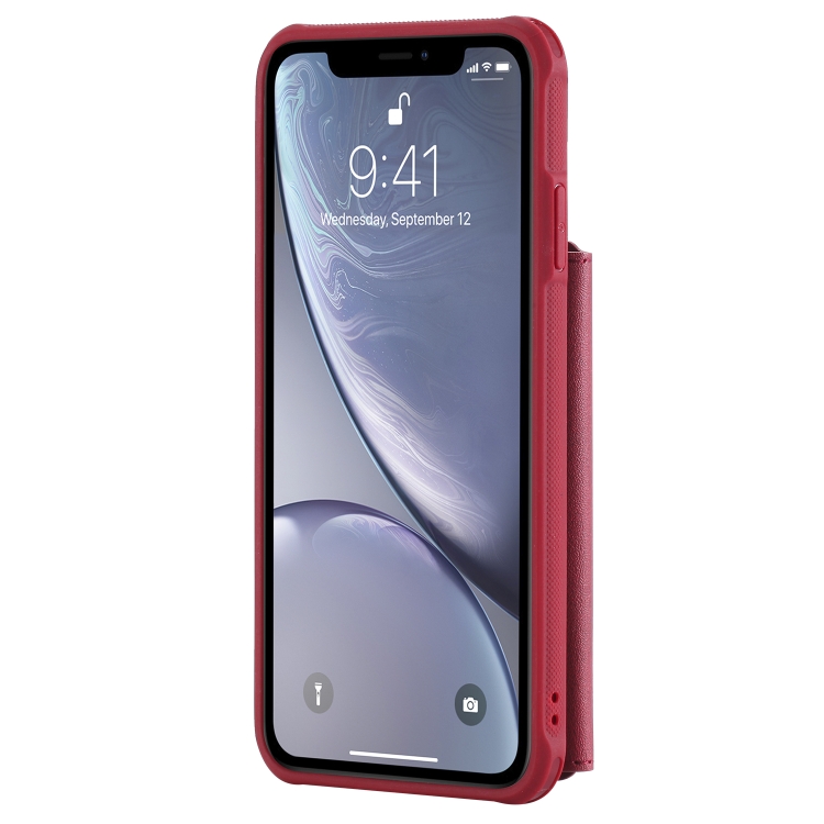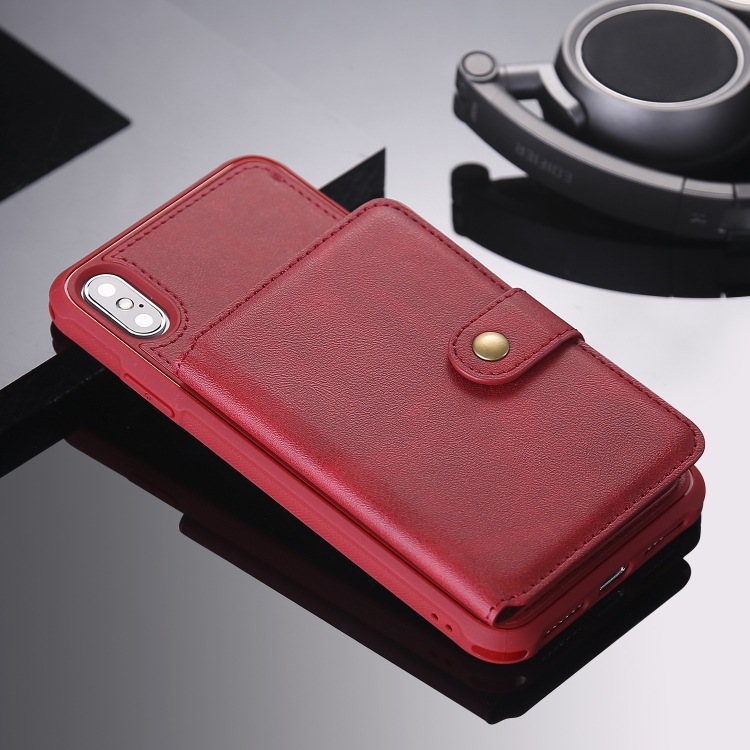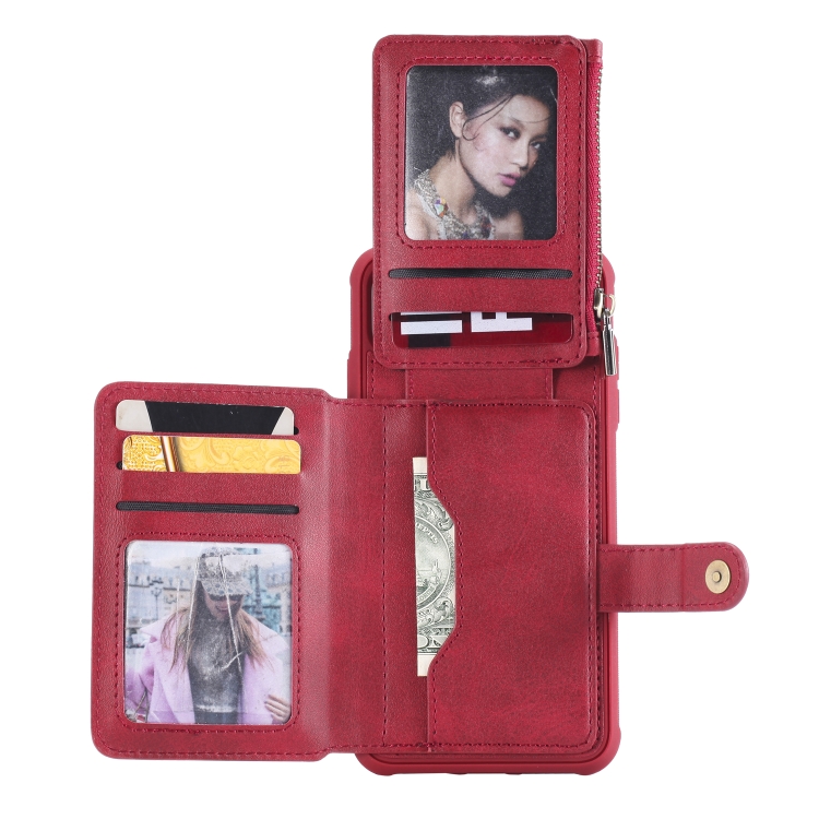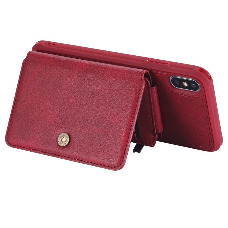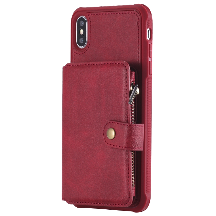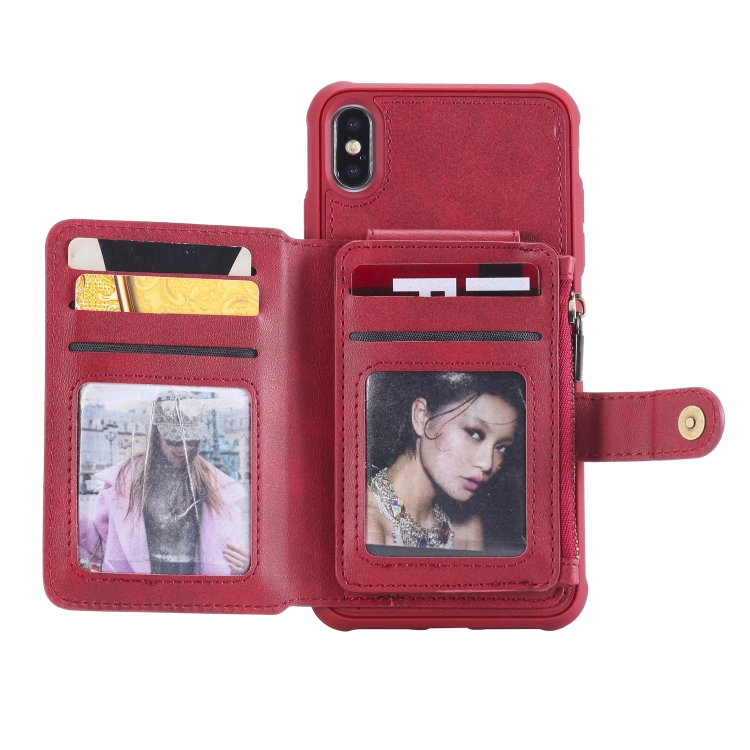 Funda Protectora para iPhone Xs Max con Cremallera Ranuras para Tarjetas Soporte y Billetera (Rojo)