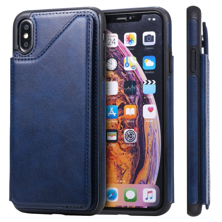 Funda Protectora para iPhone Xs Max con Textura de Pantorrilla, Soporte, Ranuras para Tarjetas y Marco (Azul)