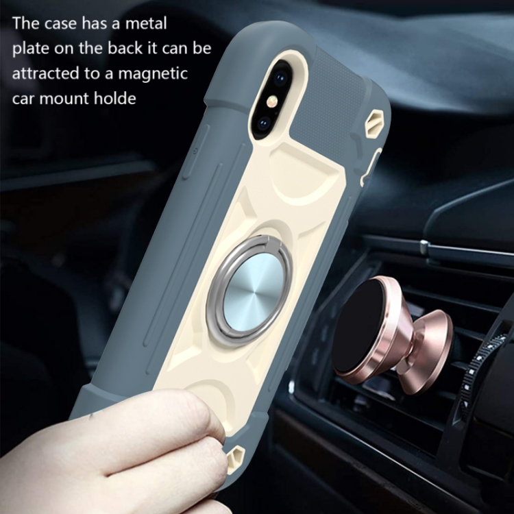 Funda Protectora para iPhone Xs Max Silicona a Prueba de Golpes + PC con Soporte Doble Anillo (Azul)