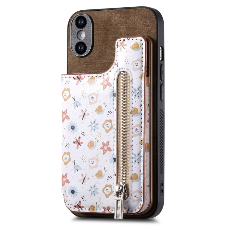 Funda Trasera para iPhone Xs Max con Billetera y Cremallera Pintada Retro (Marrón)