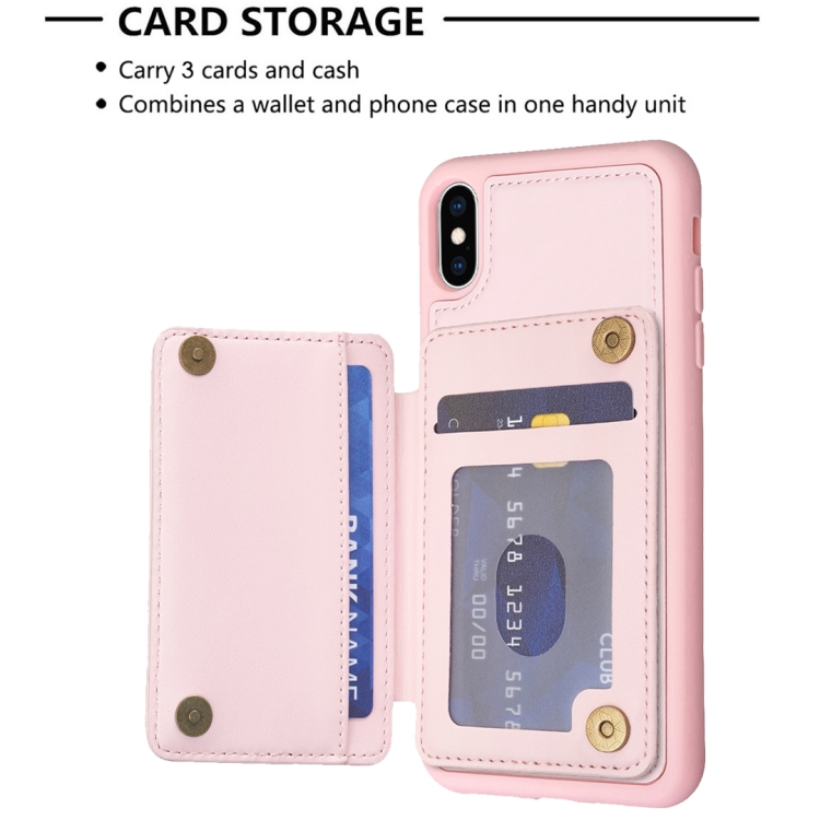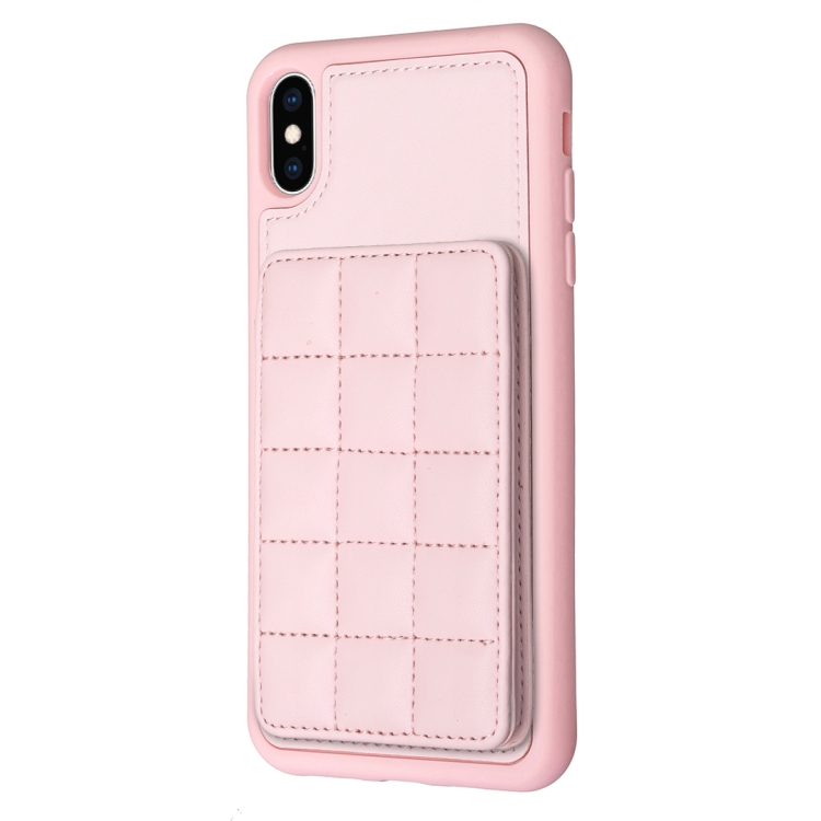 Funda para Teléfono iPhone Xs Max Grid Ranura para Tarjeta con Soporte (Rosa)