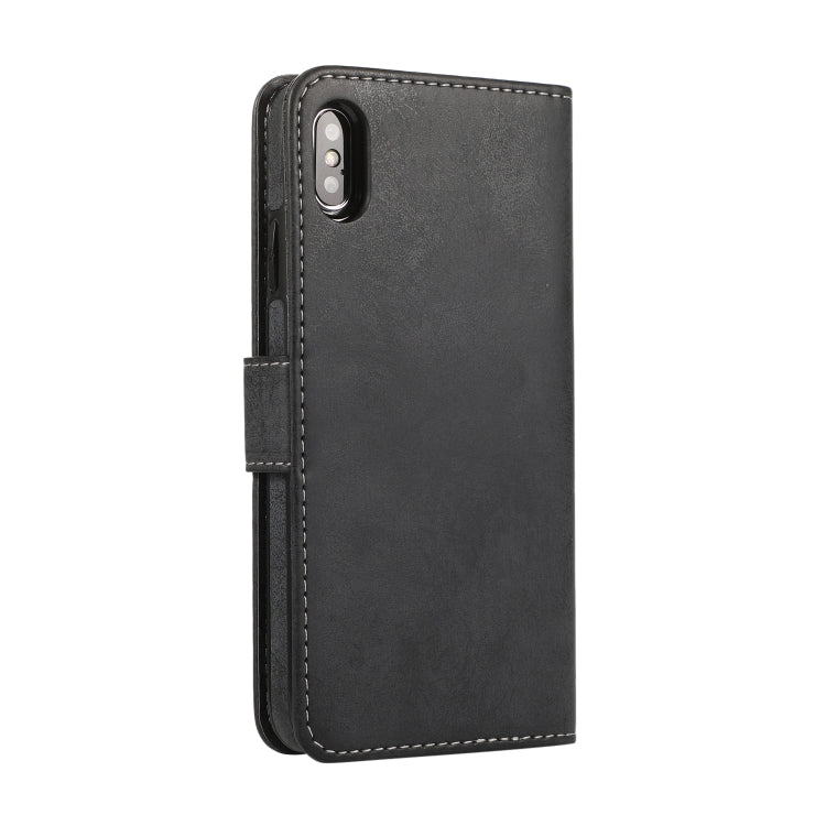 Funda para iPhone Xs Max Klt888-2 Retro 2 en 1 Cuero TPU + PU con Tapa Horizontal Magnética Desmontable Soporte Ranuras Tarjetas Marco Fotos Billetera (Negro)