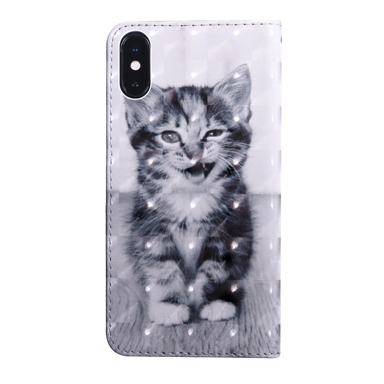 Funda para iPhone Xs Max TPU y Cuero PU con Soporte y Ranuras para Tarjetas (Smile Cat)