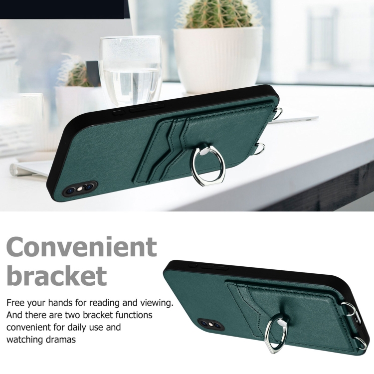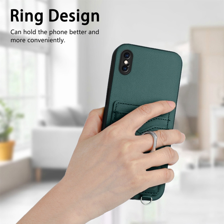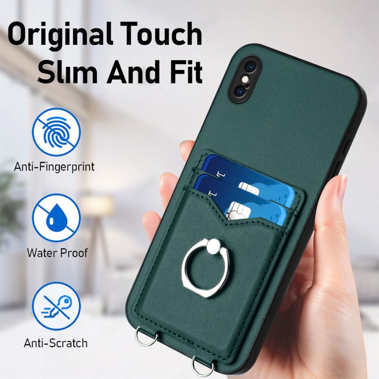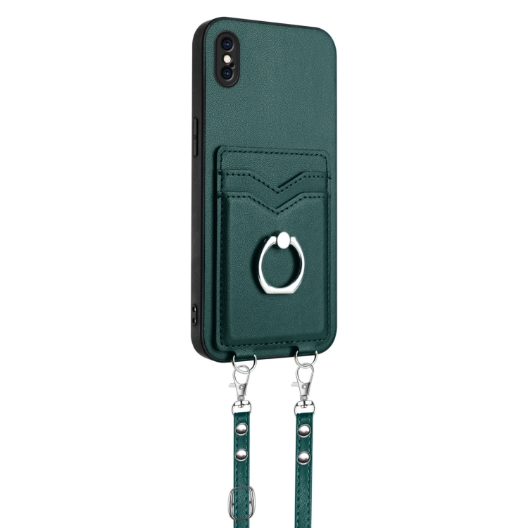 Funda para Teléfono iPhone Xs Max R20 con Soporte para Tarjeta y Anillo de Cuerda Cruzada (Verde)