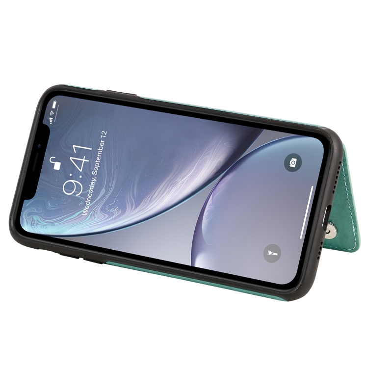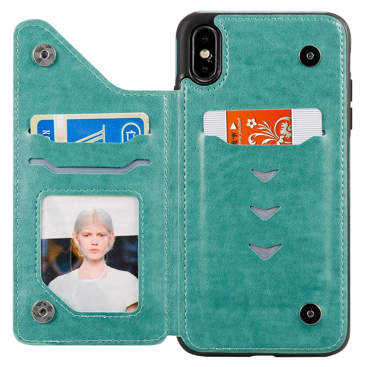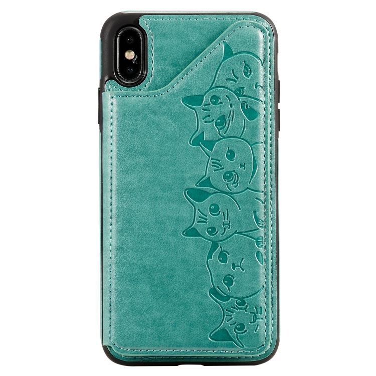 Estuche protector para iPhone Xs Max Six Cats con patrón de relieve soporte ranuras tarjetas marco fotos (Verde)