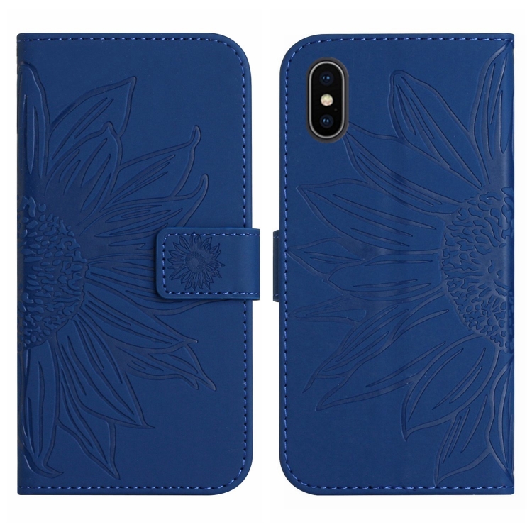 Funda de Cuero para iPhone Xs Max Skin Feel Sun Flower Pattern Flip con Cordón (Azul Oscuro)