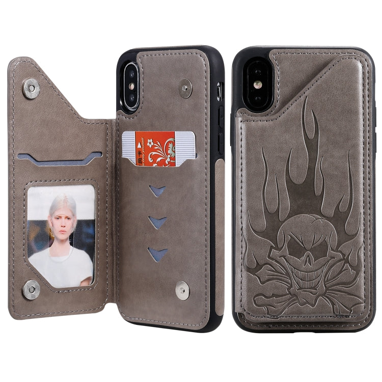 Estuche Protector para iPhone Xs Max Skull Head Patrón En Relieve a Prueba de Golpes con Soporte y Ranuras para Tarjetas y Billetera (Gris)