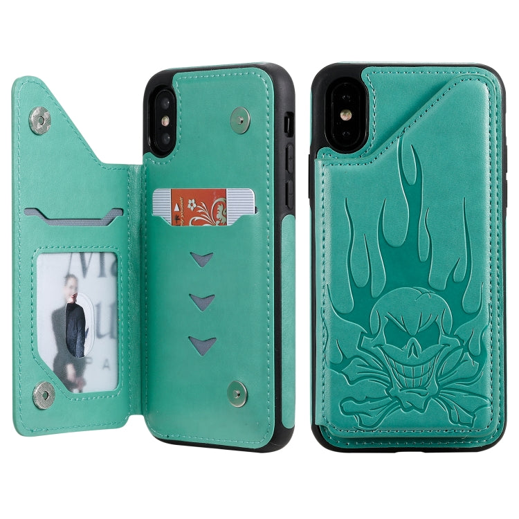 Estuche Protector para iPhone Xs Max Skull Head Patrón en Relieve a Prueba de Golpes con Soporte y Ranuras para Tarjetas y Billetera (Verde)