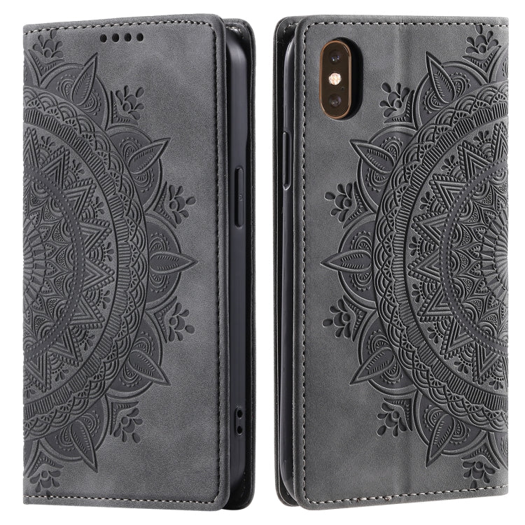 Funda de Cuero Magnética Totem para iPhone Xs Max en Relieve (Gris)