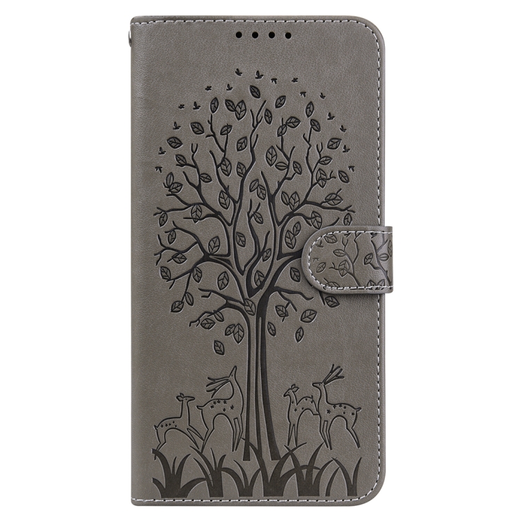 Funda de Cuero para iPhone Xs Max Tree & Deer Prensado Impresión Horizontal Flip (Gris)