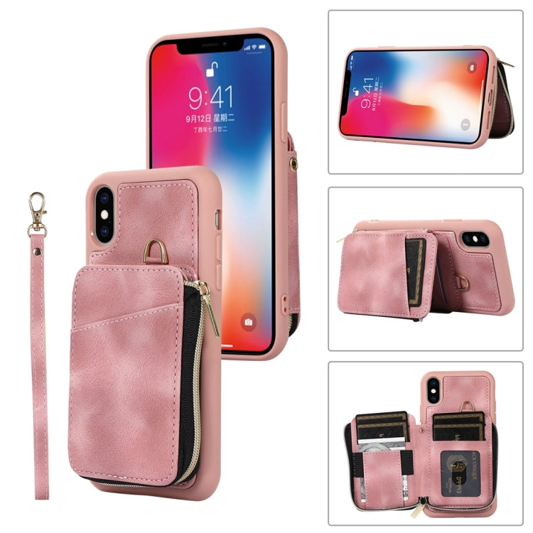 Funda para Teléfono iPhone Xs Max Zipper Card Bag Contraportada (Rosa)