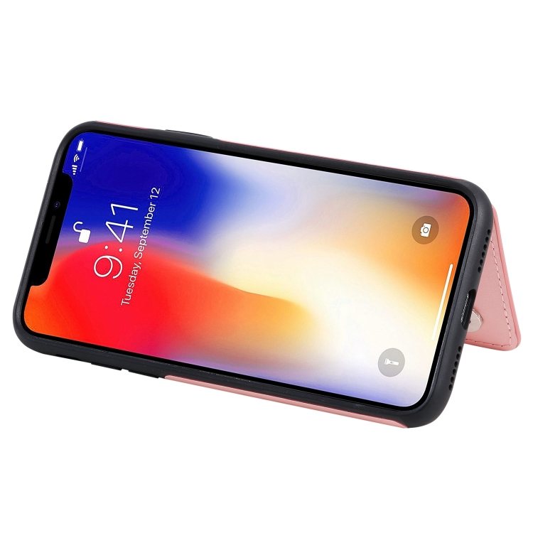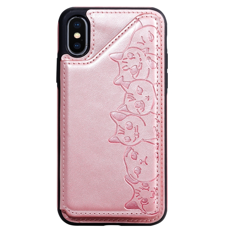 Estuche Protector para iPhone Xs Six Cats con Patrón En Relieve, Soporte, Ranuras para Tarjetas y Marco de Fotos (Oro Rosa)