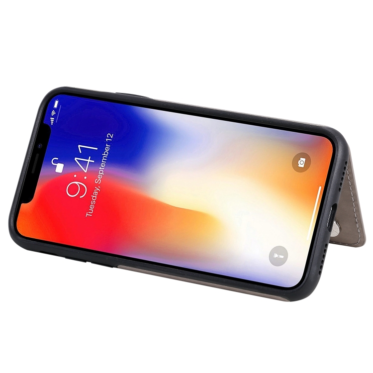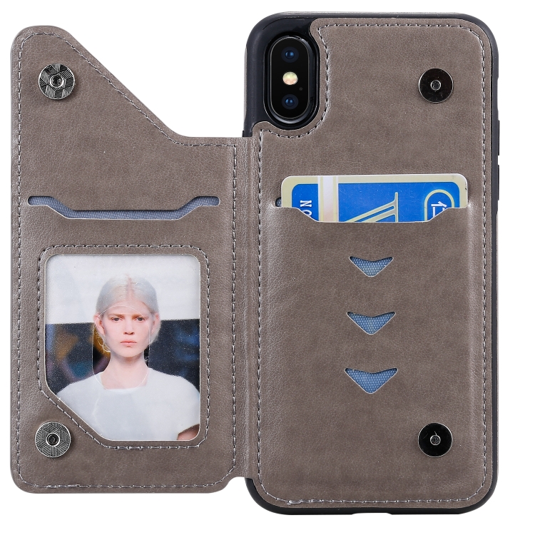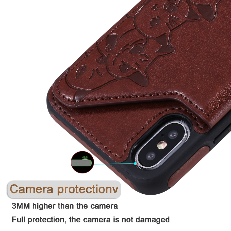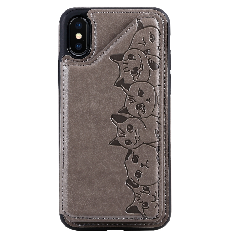 Funda Protectora para iPhone Xs Six Cats con Estampado En Relieve, Soporte, Ranuras para Tarjetas y Marco de Fotos (Gris)