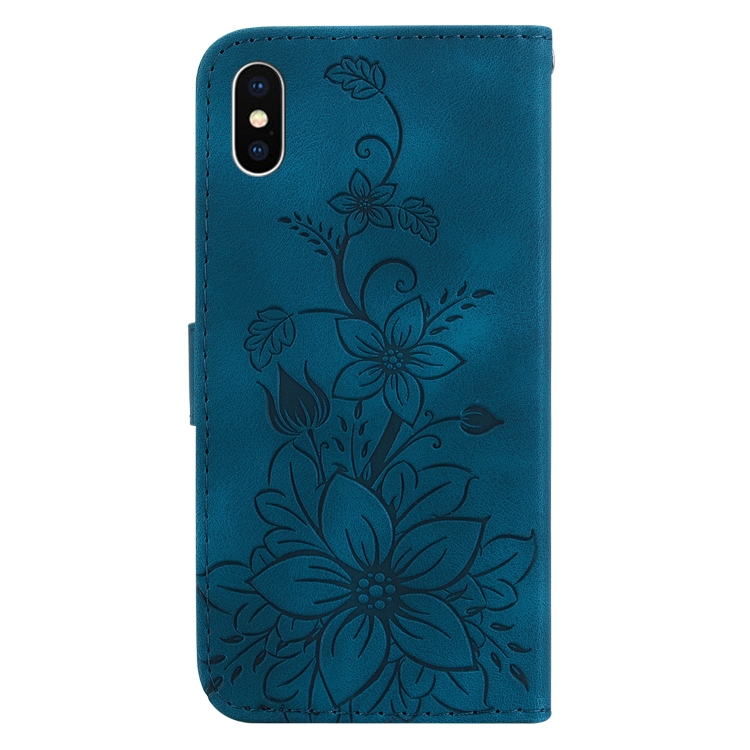 Funda de Cuero para iPhone Xs / X con Relieve Lily (Azul Oscuro)