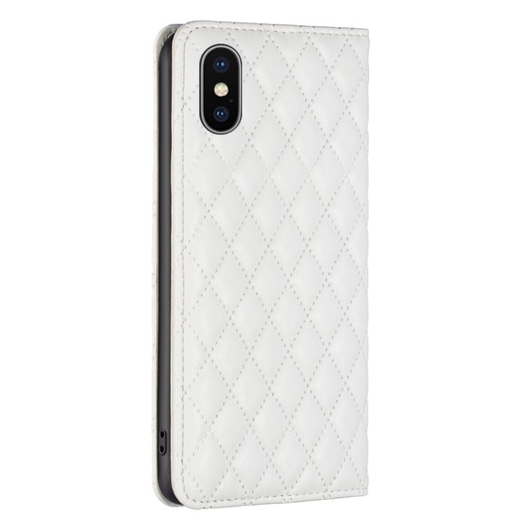 Funda de Teléfono para iPhone Xs / X con Tapa de Cuero Magnético Diamond Lattice (Blanco)