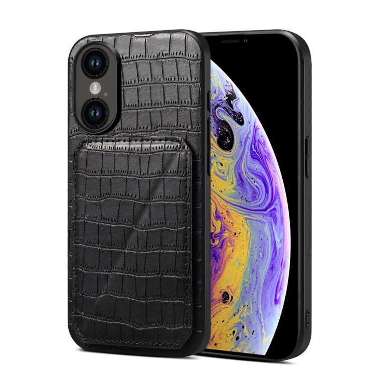 Funda Trasera iPhone Xs X Piel de Cocodrilo Imitación con Soporte (Negro)