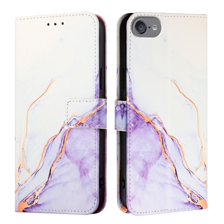 Funda de Cuero para iPod Touch 7/6/5 Pt003 con Tapa y Patrón de Mármol (Blanco Púrpura)