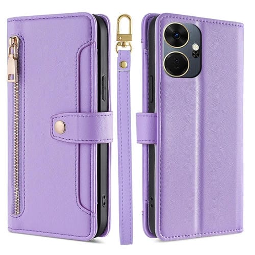 Funda de Cuero para Itel P55 + 4G con Billetera, Cremallera y Textura de Oveja (Púrpura)