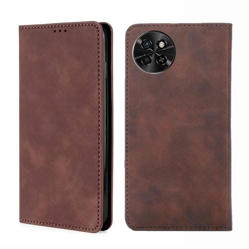 Funda de Cuero Magnética para Teléfono Itel S23 4G Skin Feel (Marrón Oscuro)