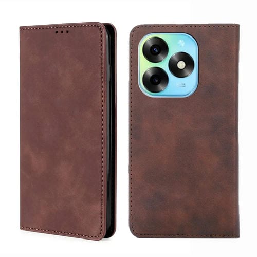 Funda de Cuero Magnética para Itel S23 Plus 4G Skin Feel (Marrón Oscuro)