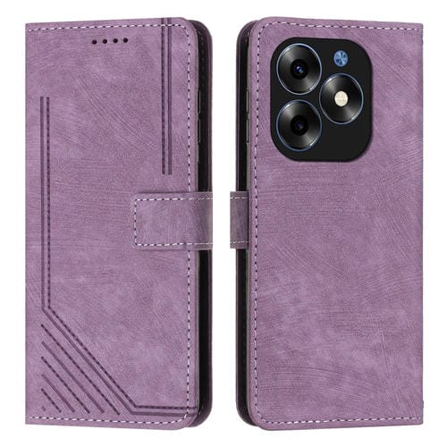 Funda de Cuero Skin Feel para Itel S23 con Patrón de Rayas y Cordón (Púrpura)
