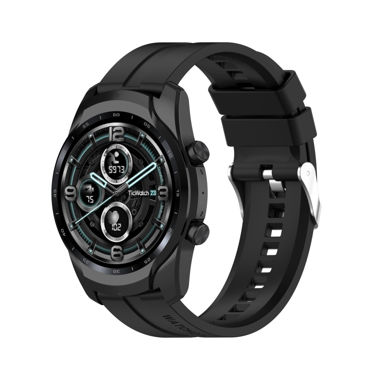 Banda de Reloj de Silicona para Ticwatch Pro 3 con Hebilla de Acero Plateado (Negro)