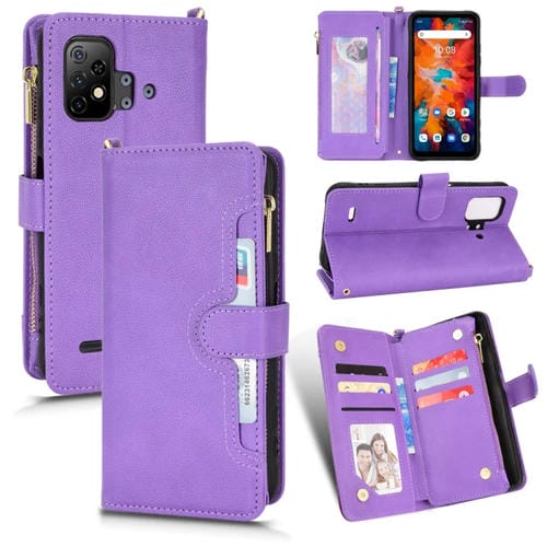 Funda de Cuero con Cremallera para Umidigi X10 Textura Litchi (Púrpura)
